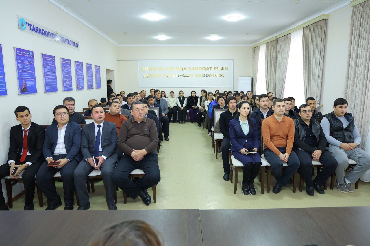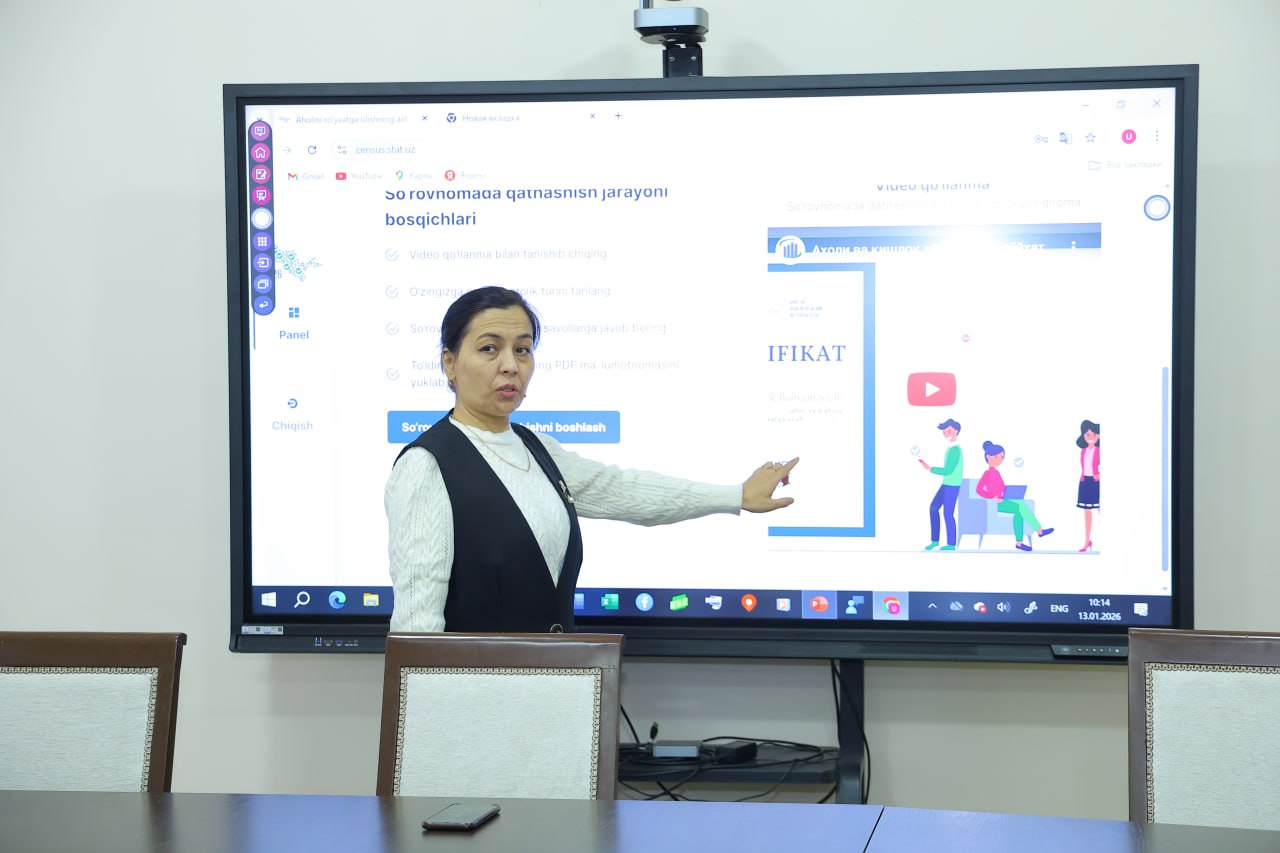 Today’s training seminars are being conducted with the participation of Shukhratbek Rakhimov, Head of the Human Resources Department, Sirojbek Allanazarov, Director of the Registrar’s Office, and responsible staff of the Khorezm Regional Statistics Department — Intizor Palvonova and Mehribon Ataboyeva.