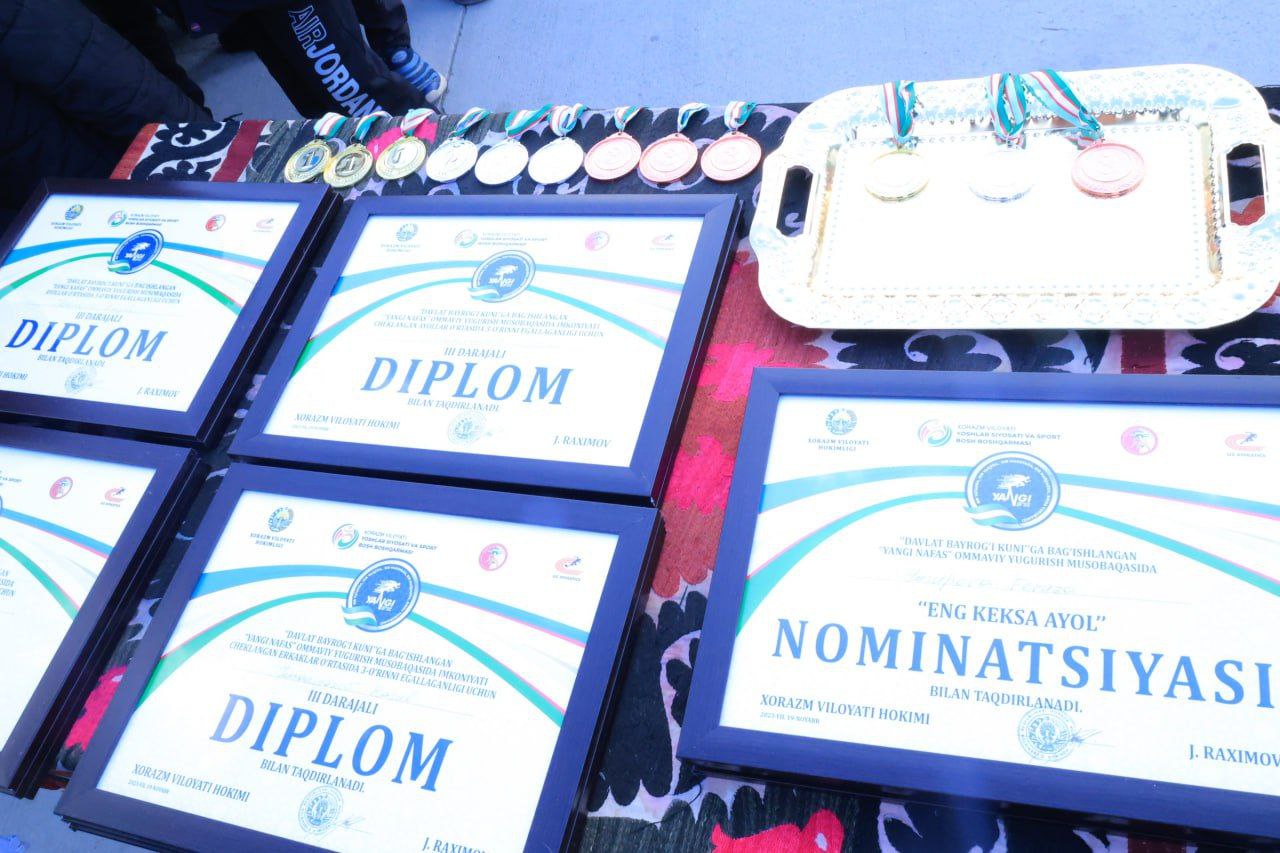 In the "New breath" sports competitions held in Khiva, students of Urganch State Pedagogical Institute of Physical Education Faculty, Isobek Saporboyev won the 1st place, Akbar Jumaniozov the 2nd place, and Rasulbek Jumaniozov the 3rd place.
