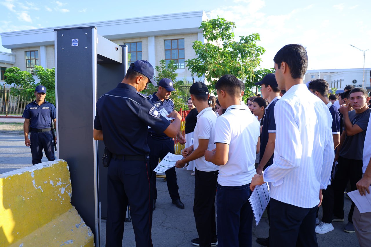 Сотрудники Ургенчского государственного педагогического института также активно участвуют в обеспечении дисциплины при входе абитуриентов на экзамен и хранении их вещей до входа и выхода с экзамена.
