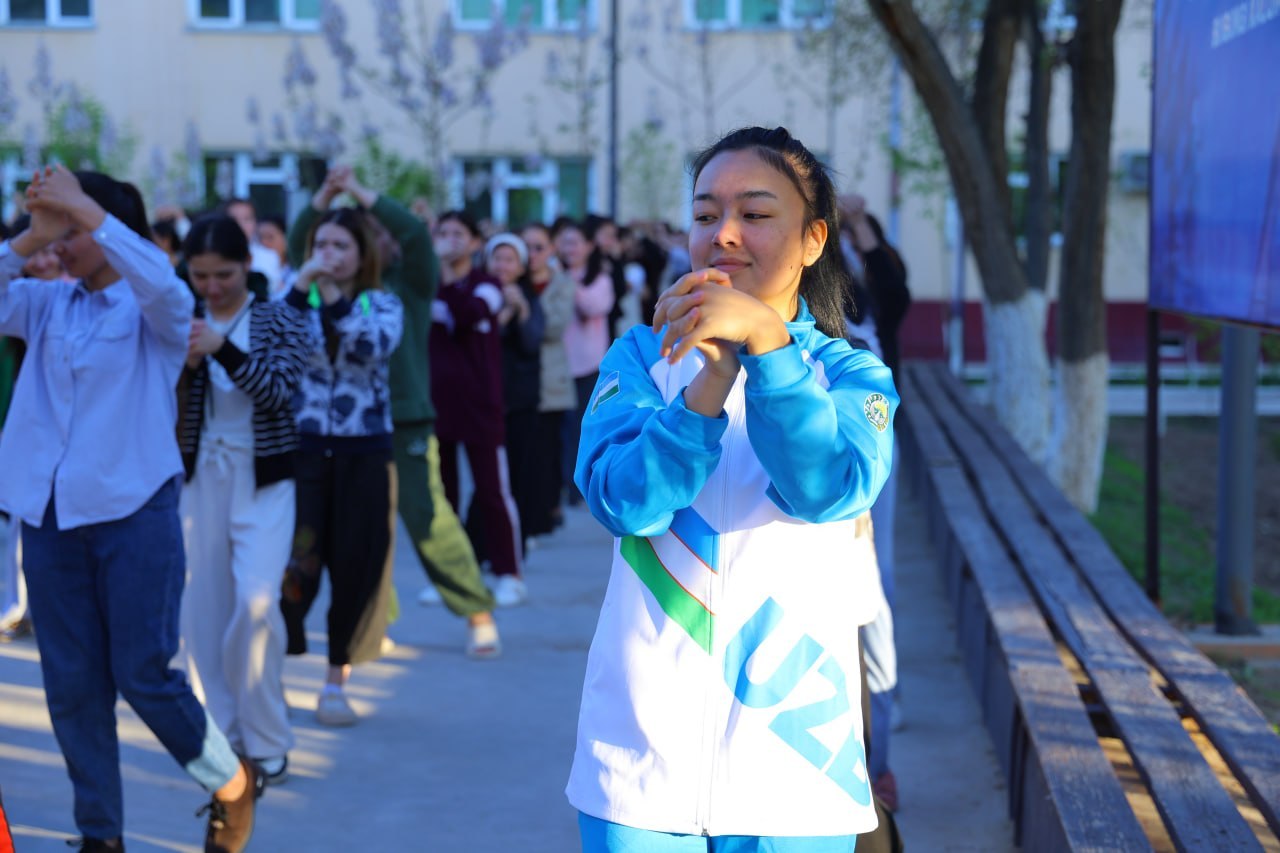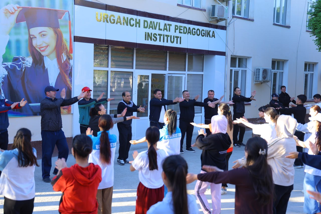 В связи с этим сегодня рано утром молодёжь, проживающая в студенческом общежитии Ургенчского государственного педагогического института, под руководством исполняющего обязанности ректора УрГПИ Д. Абдуллаева и ответственных лиц выполнила утреннюю зарядку.