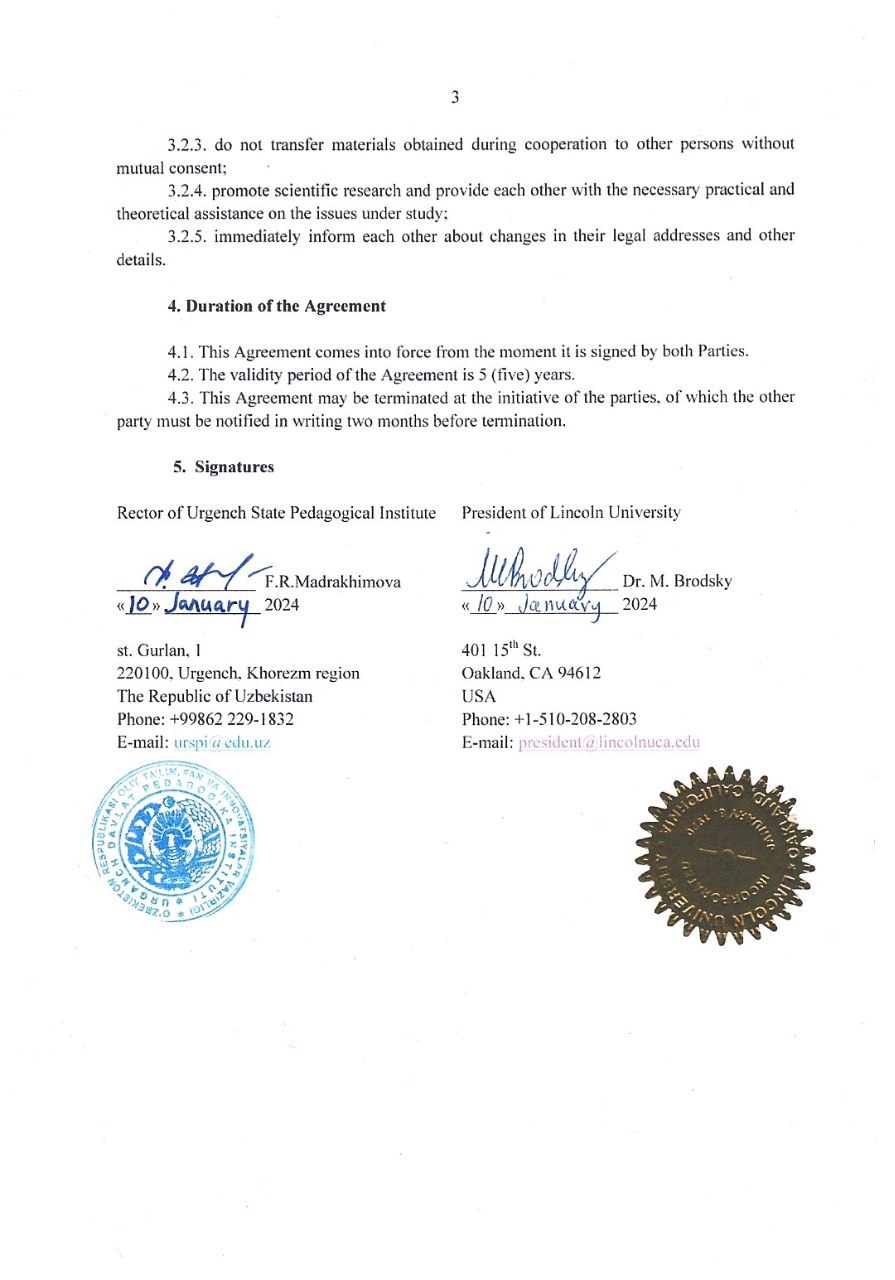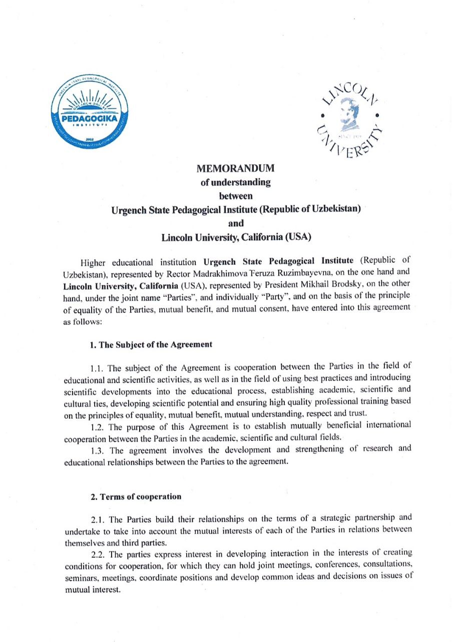 UrDPI va AQSHning Linkoln universiteti bilan hamkorlik memorandumi imzolandi.