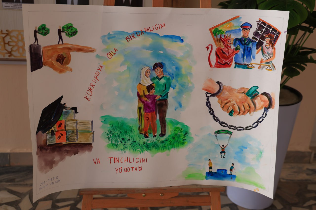 Tanlovda institutning barcha fakultetlaridan jami 150 nafardan ortiq talaba-yoshlar o‘zilarining korrupsiyaga qarshi kurashishga doir mualliflik asosida chizgan rasmlari bilan ishtirok qildilar.