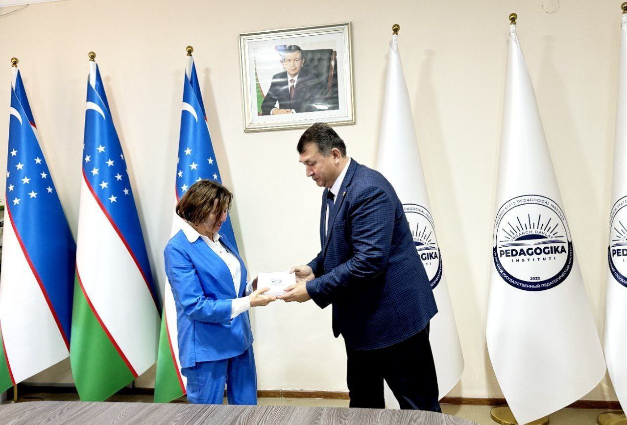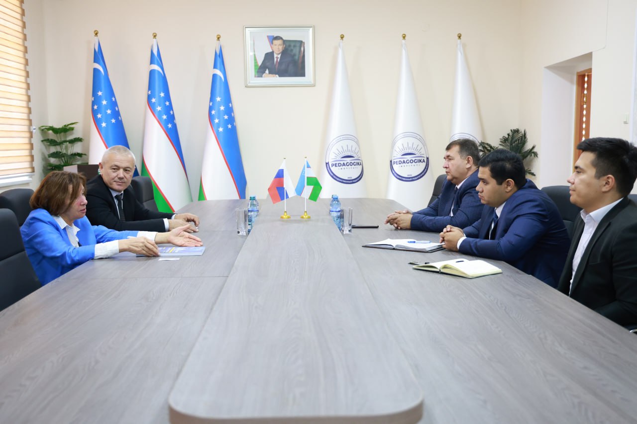 Urganch davlat pedagogika institutiga Rossiya Federatsiyasi Povoljya davlat jismoniy tarbiya, sport va turizm universiteti "Jismoniy madaniyat" kafedrasi professori, pedagogika fanlari doktori Zotova Firuza Raxmatullovna tashrif buyurdi hamda "Jismoniy madaniyat" kafedrasi mudiri O‘ktam Matnazarov hamrohligida institutning Ilmiy ishlar va innovatsiyalar bo‘yicha prorektori Diyorjon Abdullayev, O‘quv ishlari bo‘yicha prorektori Umarbek Sheripov, Xalqaro hamkorlik bo'limi boshlig'i Jaloliddin Sa'dullayevlar bilan uchrashdi.