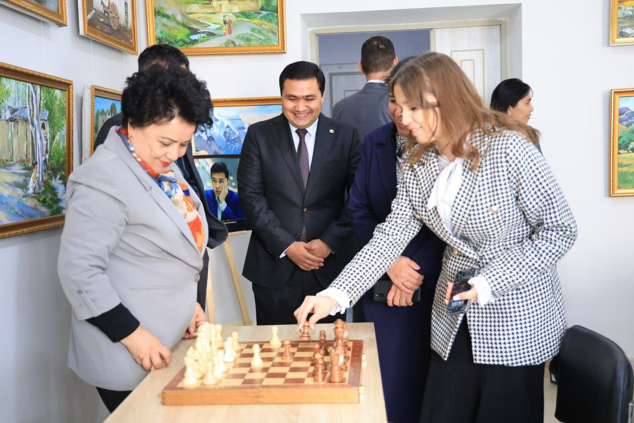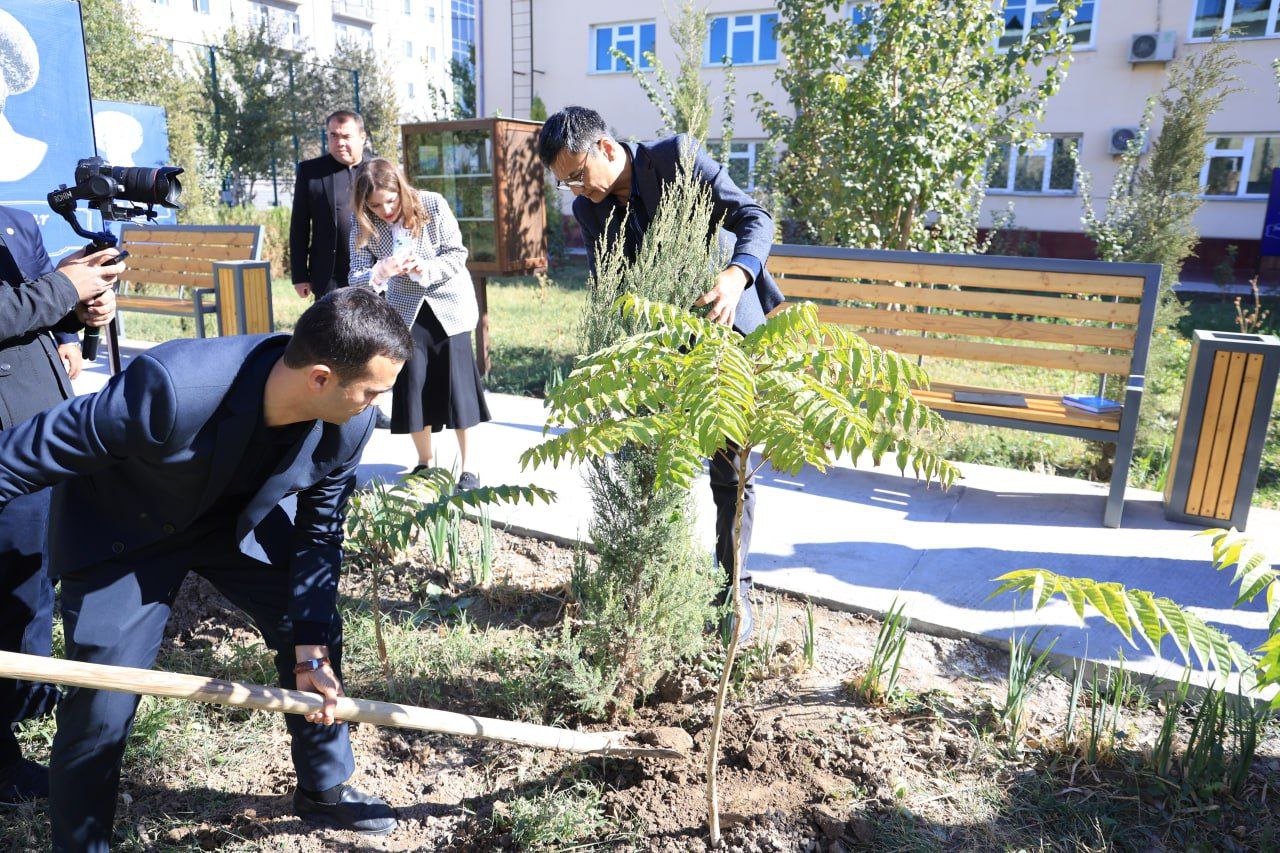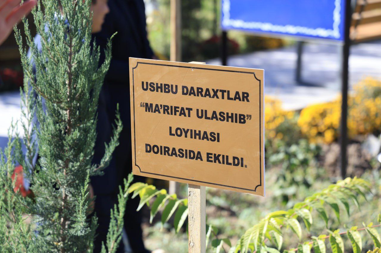 Tashrif avvalida mehmonlar ma'rifatparvar bobolarimiz siymolarini aks ettirgan ma'rifat go'shasi - "Jadidlar bog'i"ga tashrif buyurdilar hamda "Yashil makon" umummilliy loyihasi doirasida ko'chatlar ekdilar. Shuningdek, talabalar turar joyida yoshlar uchun yaratilgan shart-sharoitlar hamda OTM fayesida Tasviriy san'at va muhandislik grafikasi yo'nalishi talabalari tomonidan chizilgan suratlar ko'rgazmasi bilan ham yaqindan tanishdilar.