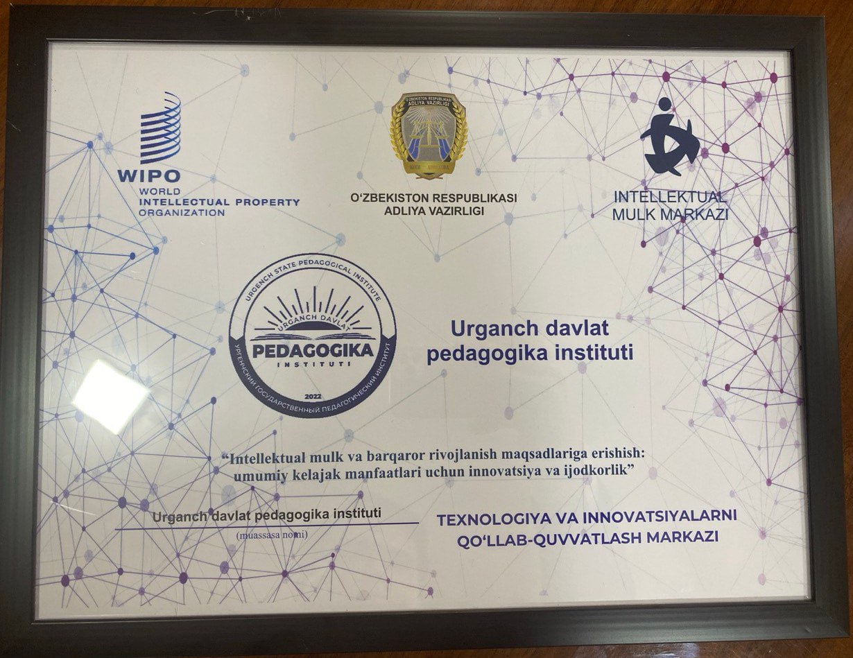 UrDPI Adliya vazirligi huzuridagi Intellektual mulk markazi tomonidan o‘tkazilgan 3-Milliy anjumanda e'tirof etildi.