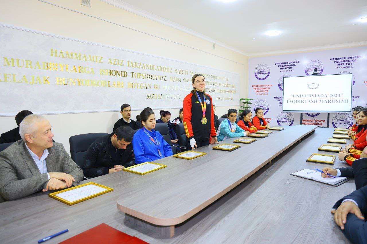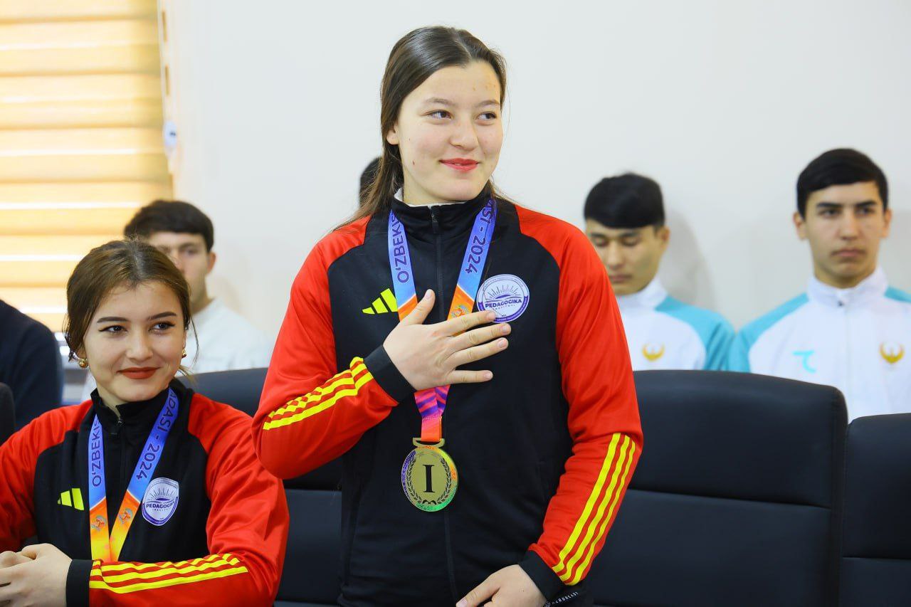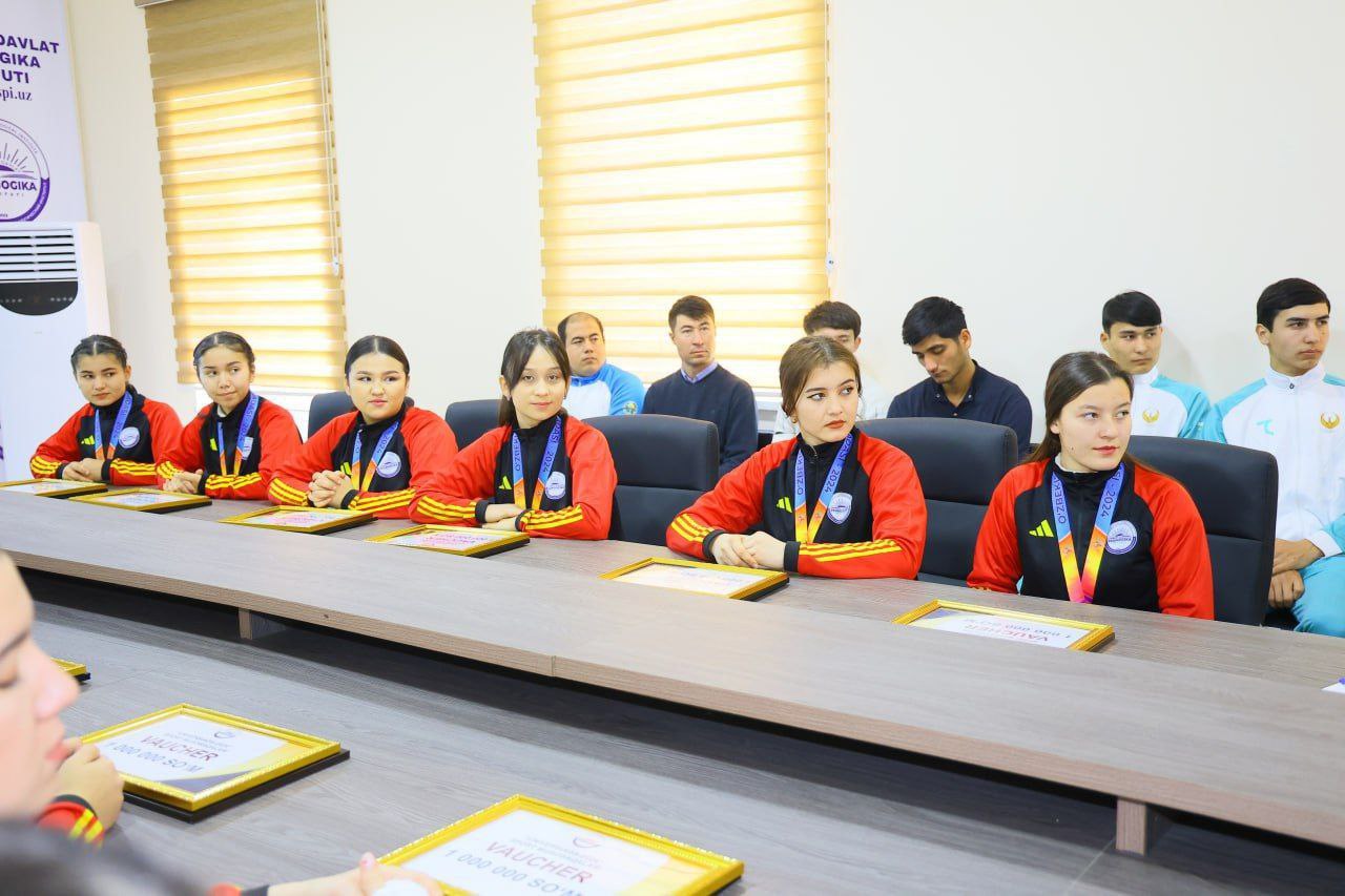 UrDPI va O‘zbekiston Karate-do federatsiyasi o‘rtasida memorandum imzolangan so'ng, o‘tgan haftada sportda qator yutuqlarga erishgan quyidagi talabalar UrDPI rektori tomonidan bazaviy stipendiyaning 4 barobari miqdorida moddiy rag'batlantirildi: